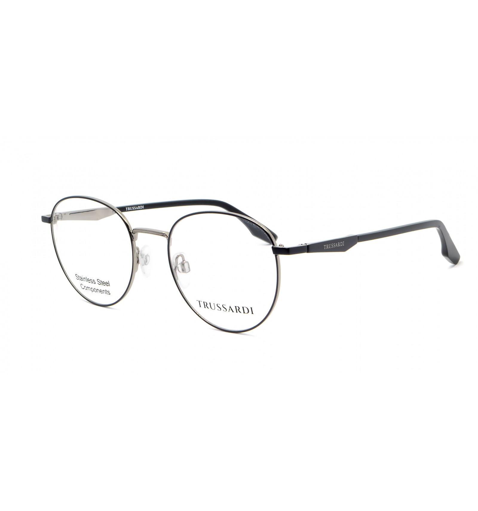 Montatura per occhiali da vista Trussardi per uomo e donna, realizzata in metallo lavorato con grande accuratezza per soddisfare anche i più attenti ai dettagli.
